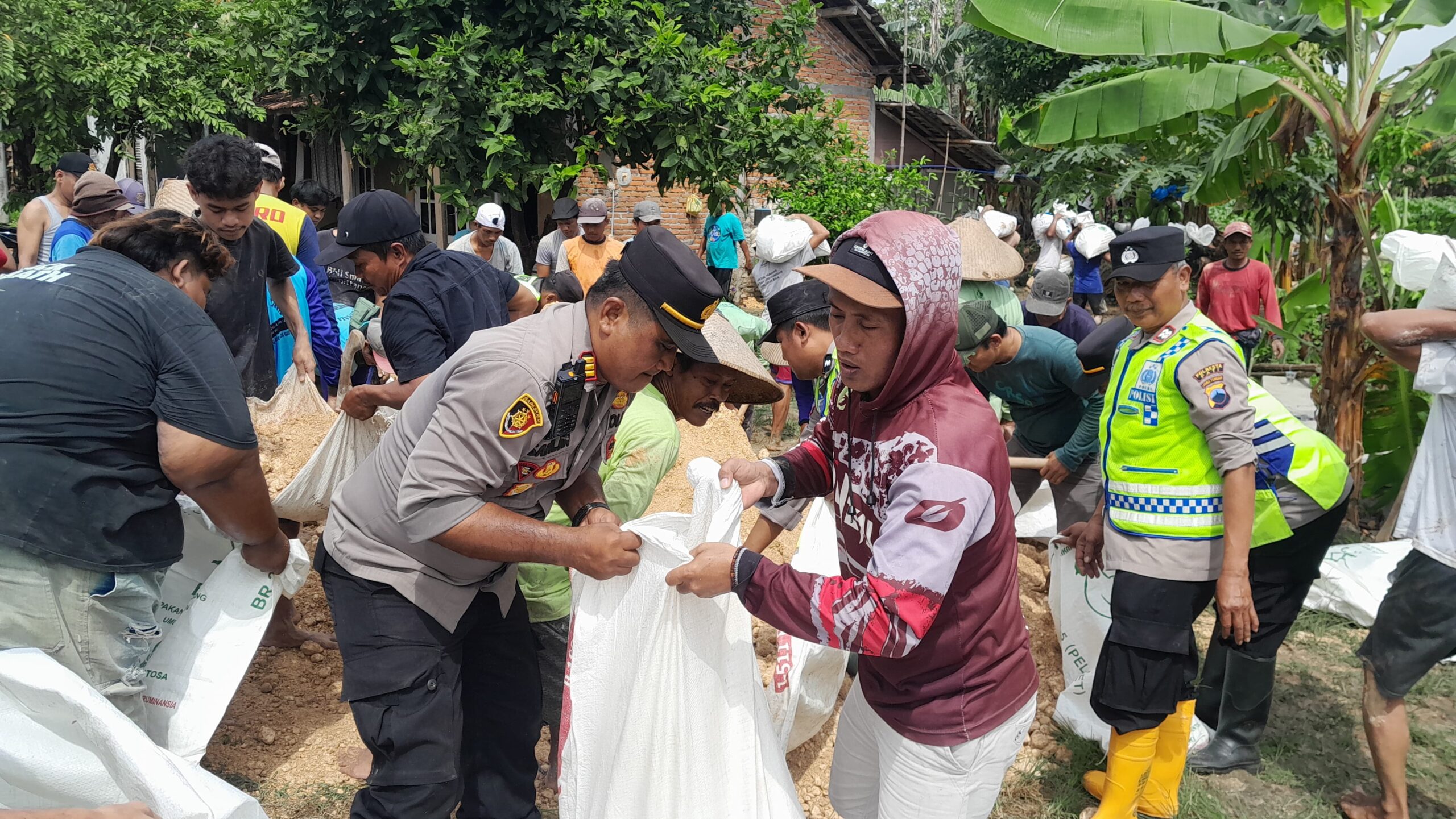Kegiatan yang dimulai sekitar pukul 09.00 WIB tersebut dipimpin langsung Kapolsek Sukolilo AKP Sahlan, S.H., M.M., dan melibatkan puluhan personel Polri, TNI, aparat kecamatan, pemerintah desa, serta masyarakat setempat. Kerja bakti difokuskan pada penguatan tanggul yang dinilai rawan jebol saat debit air Sungai Juwana meningkat.