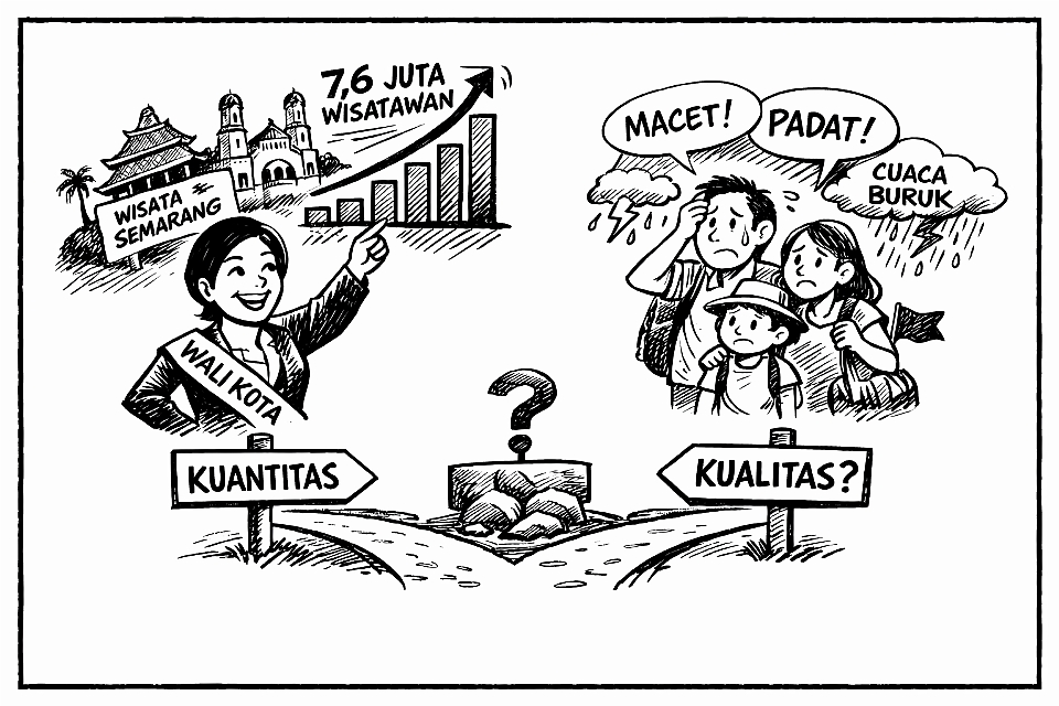 Ya, ledakan jumlah kunjungan wisatawan adalah peluang sekaligus peringatan. Hal itu membuat Kota Semarang berada di tengah persimpangan, apakah akan tumbuh sebagai kota wisata yang nyaman dan berkelas atau terjebak dalam euforia mass tourism tanpa kendali?