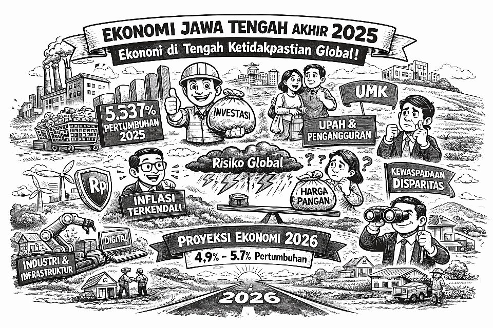 Untuk menyongsong 2026, kunci utamanya adalah memperkuat daya saing ekonomi lokal melalui inovasi, diversifikasi, dan sinergi antara sektor publik dan privat, sehingga pertumbuhan bukan hanya kuat di angka, tetapi juga berkelanjutan dan inklusif bagi seluruh masyarakat Jawa Tengah. (*)